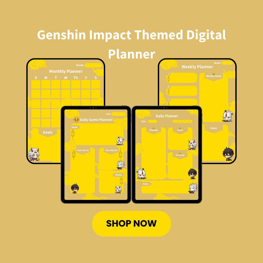 Elevate your planning and productivity with my versatile set of digital planners! Designed to help you organize your life efficiently, these planners cater to monthly, weekly, and daily needs. Plus, for Genshin Impact enthusiasts, I offer a specialized Digital Game Planner to streamline your gaming sessions. All templates are fully customizable in Canva, allowing you to tailor them to your unique style and preferences.
